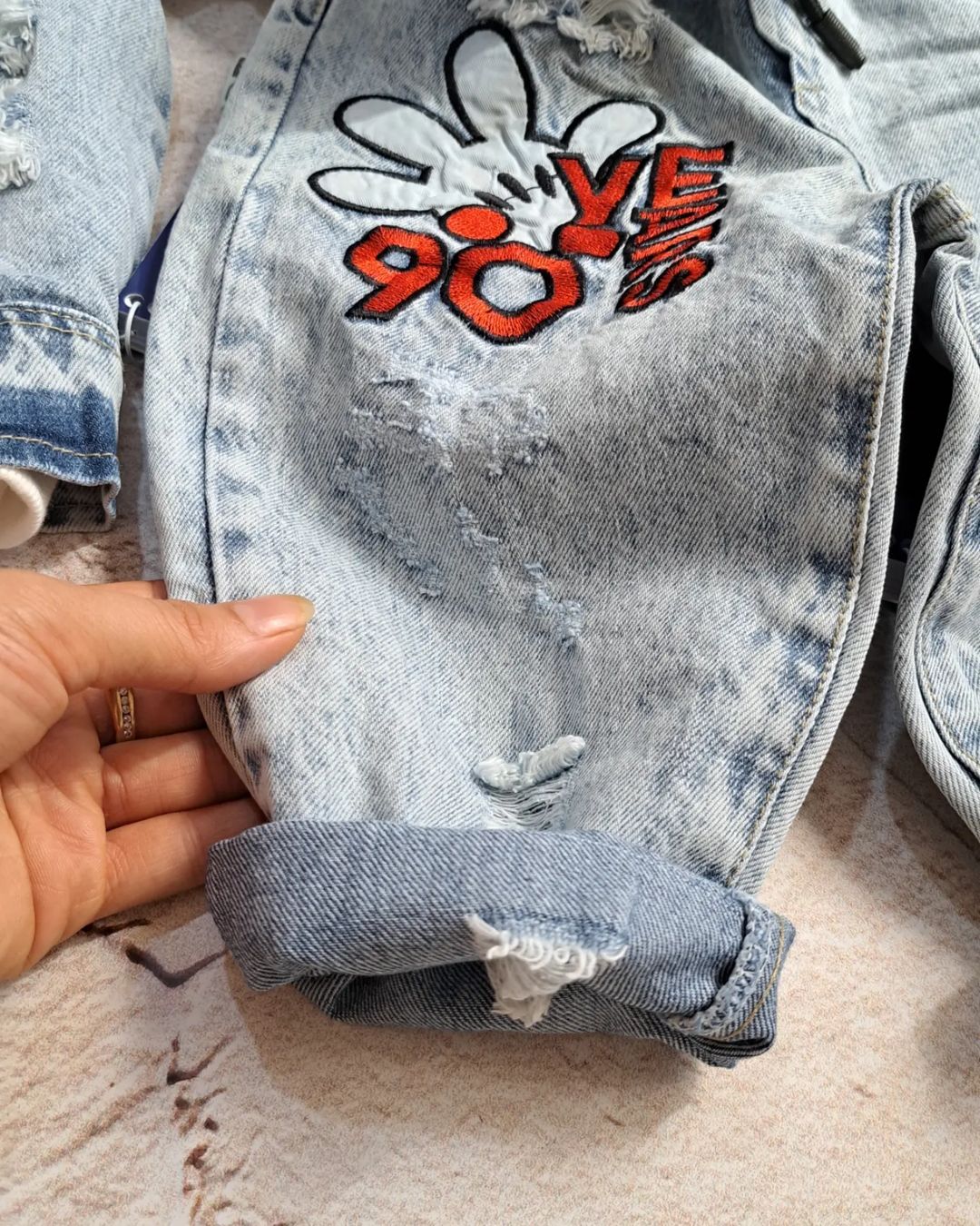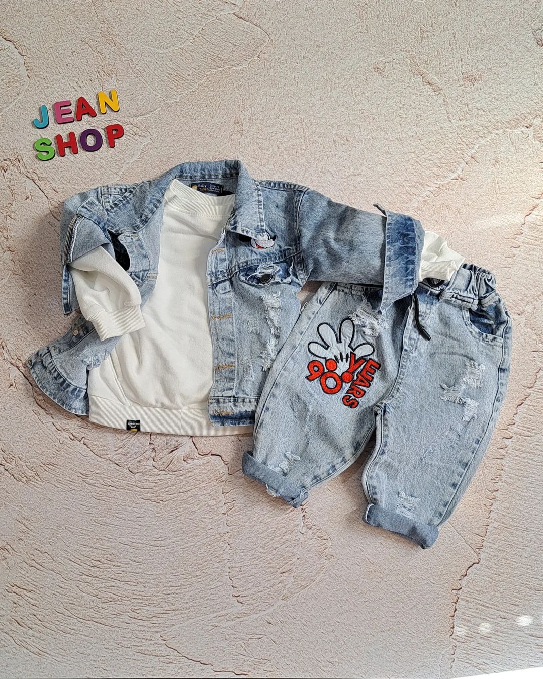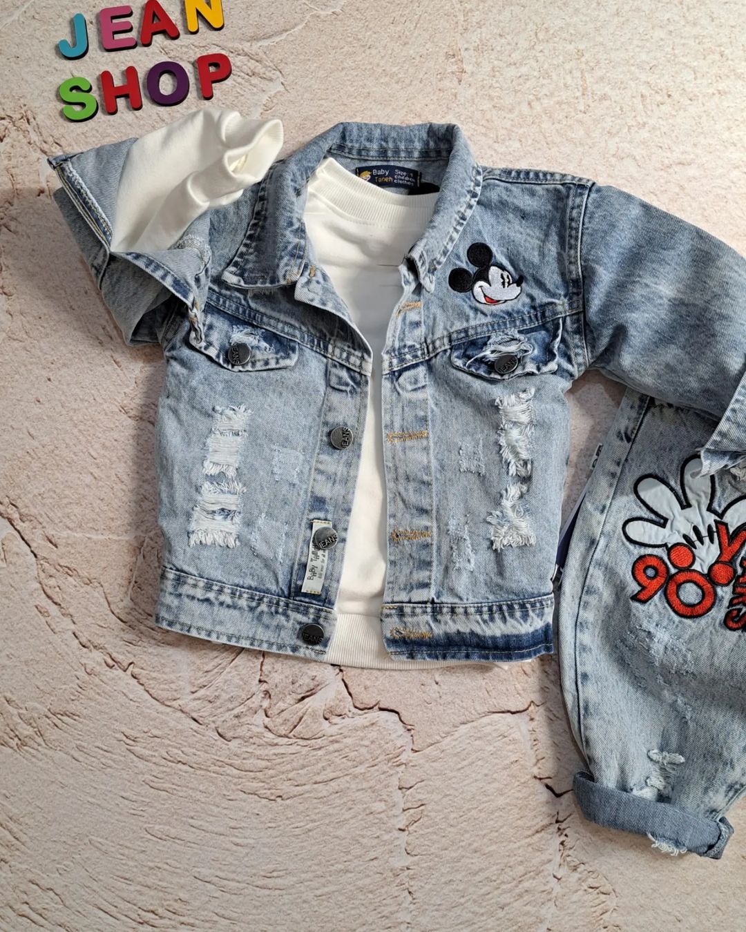 ✅️سِت کت و شلوار جینِ زاپدار میکی